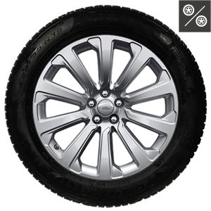 Zestaw kompletnych kół zimowych MY21-MY24 składających się z: oryginalnej felgi dedykowanej do danego modelu pojazdu, w pełni homologowanej i dopuszczonej przez markę JLR opony zimowej, czujnika ciśnienia powietrza (TPMS) i oryginalnego kapselka z logo marki.